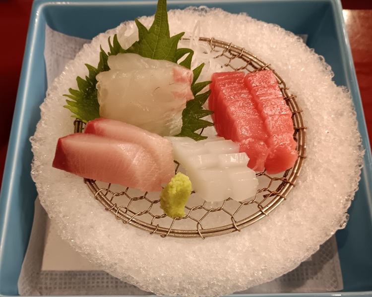早速、無料のピザと生ビールとぜんざいを頂く
